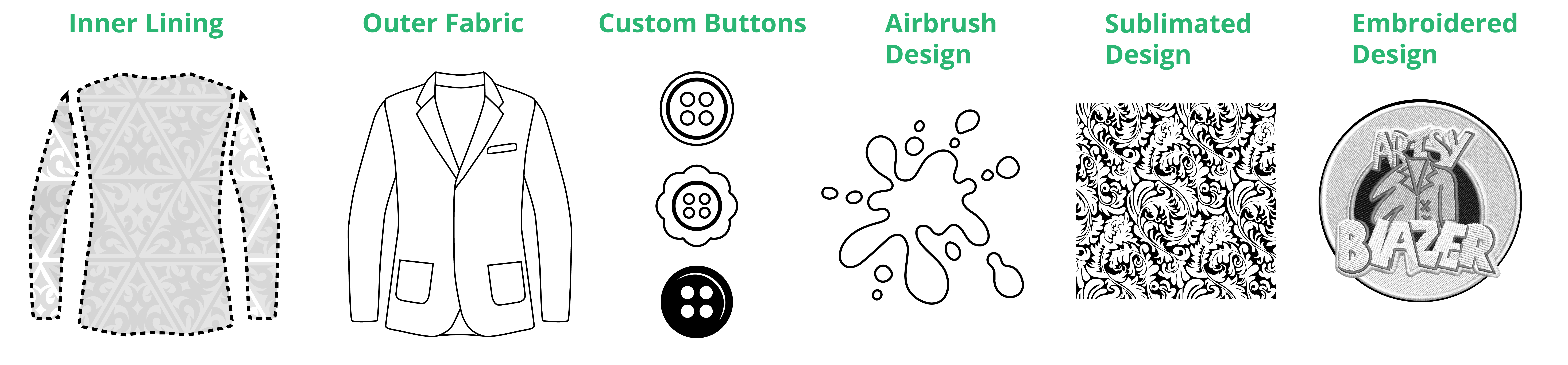However if you have your own unique design or idea then we can work together to bring your vision to life. Providing your artwork, sketches or any ideas to help with the production process, you too can have your very own custom made blazer. The purchase and production process is listed below